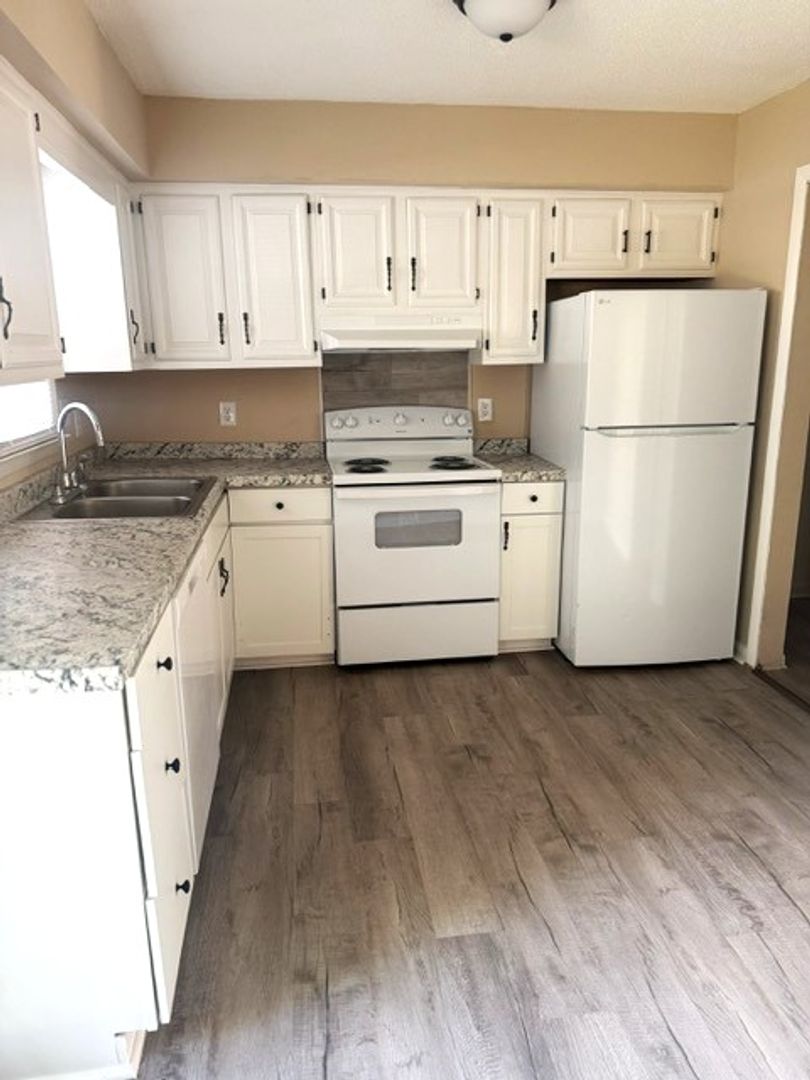 2 Bedroom, 1.5 Bath Duplex, Laundry room, Rear patio, Corner lot, Appliances include Refrigerator, Range