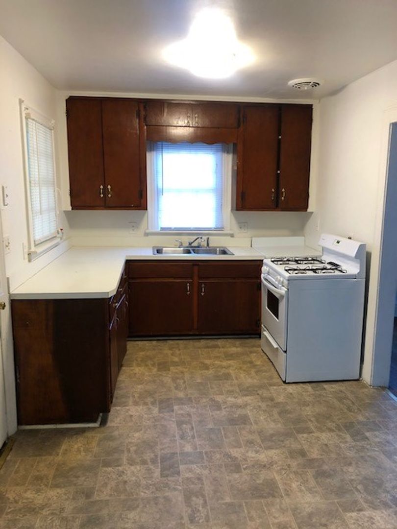 Home features hardwood flooring throughout, 2-bedrooms, 1-bath, living room, Formal Dining Room, Eat-in Kitchen, Laundry room, and spacious rear yard.
